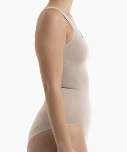 Bodi za oblikovanje postave zagotavlja popolno podporo in močno kompresijo na trebuhu, bokih, oprsju in zadnjici ter se ženskemu telesu prilega kot druga koža.