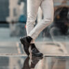 Previdno povlecite nogavico čez stopalo, peto in nato čez meča do pod kolena.