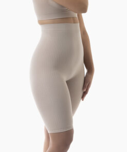 Kratke hlače za oblikovanje postave imajo posebno mikromasažno pletenino z grobimi in gladkimi predeli. Ta struktura se aktivira z vsakim gibom telesa in nežno masira kožo, spodbuja krvni obtok ter pomaga odstranjevati toksine. Rezultat je vidno bolj gladka in čvrsta koža ter zmanjšan videz celulita.