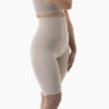 Kratke hlače za oblikovanje postave imajo posebno mikromasažno pletenino z grobimi in gladkimi predeli. Ta struktura se aktivira z vsakim gibom telesa in nežno masira kožo, spodbuja krvni obtok ter pomaga odstranjevati toksine. Rezultat je vidno bolj gladka in čvrsta koža ter zmanjšan videz celulita.