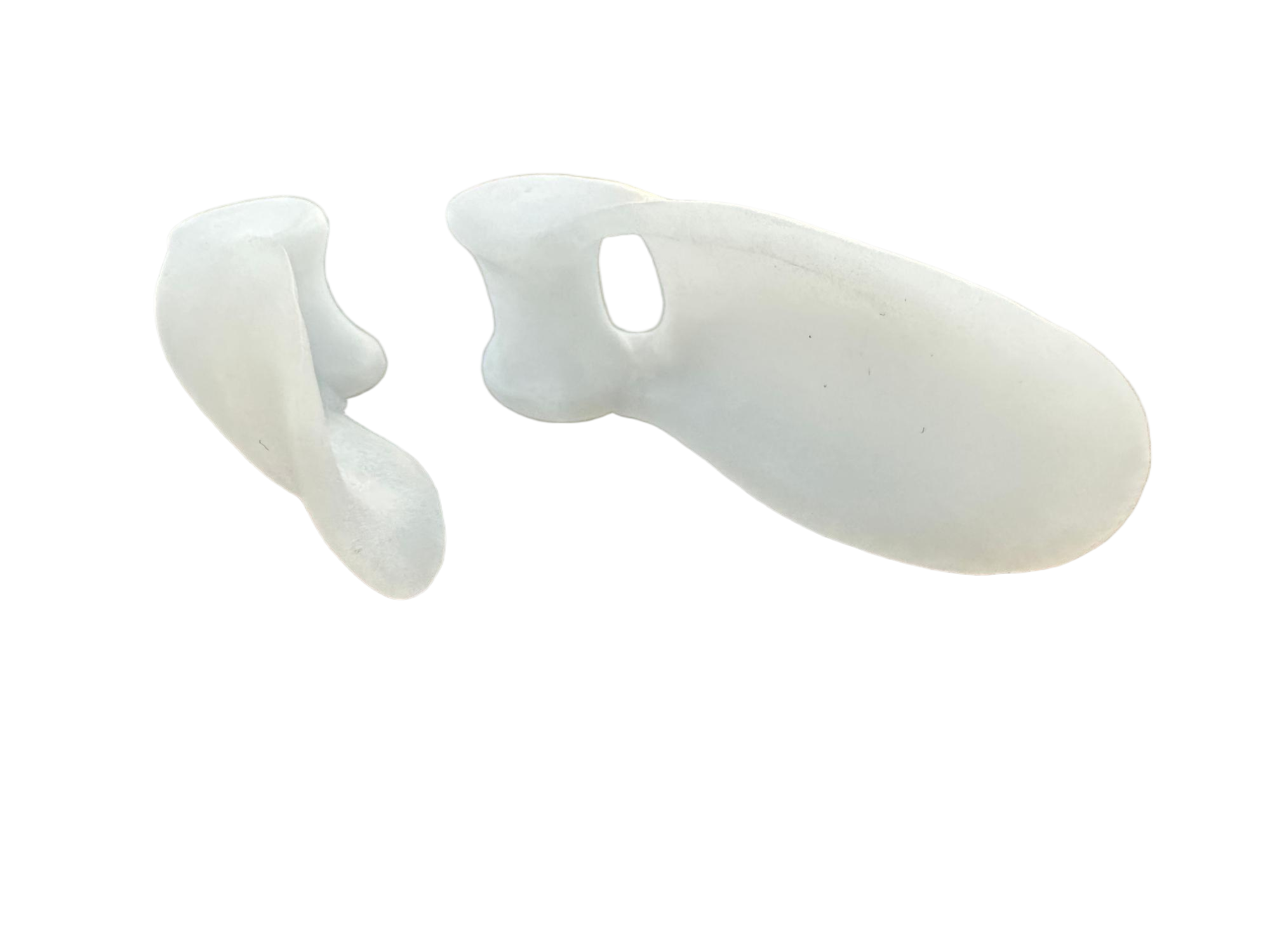 Izdelek je izdelan iz mehkega, hipoalergenega gela, ki omogoča udobno nošenje skozi daljše časovno obdobje. Material nežno objame prste, hkrati pa zmanjšuje pritisk in trenje med njimi, kar preprečuje nastanek otiščancev in draženja kože.